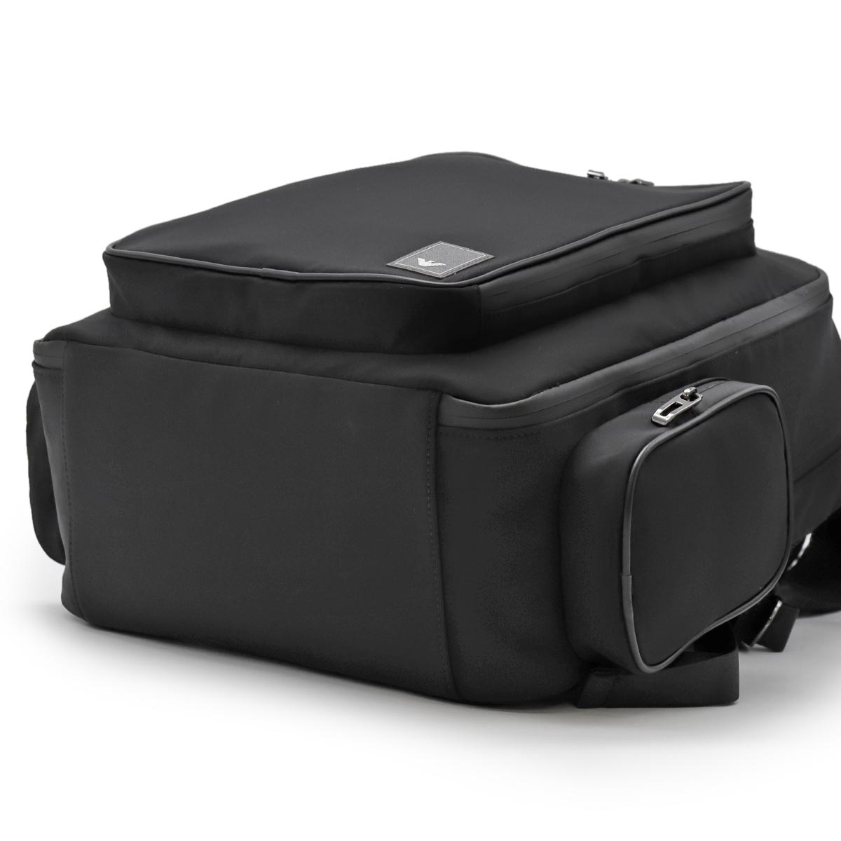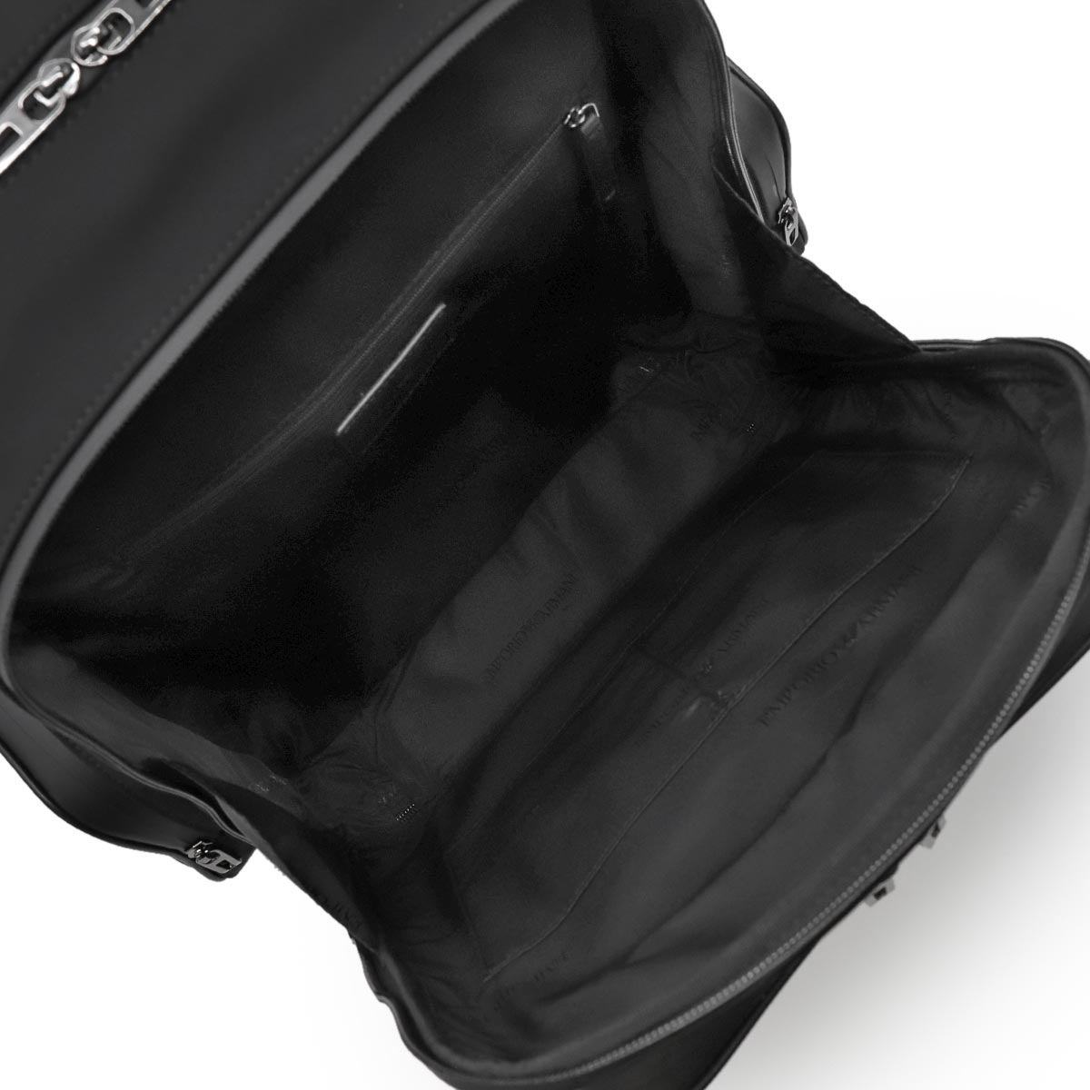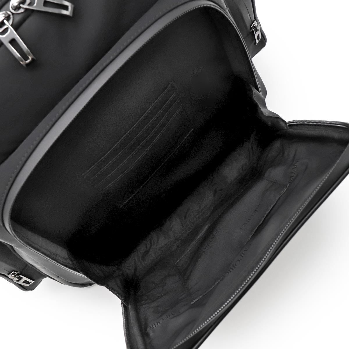 エンポリオアルマーニの【トラベル/TRAVEL】バックパックです。シックなブラックボディに合わせてファスナーもブラックで統一したクールなデザイン。収納が豊富で旅行などにとても便利。小旅行や街でのスポーツ、ジムなどに最適なバックパックです。