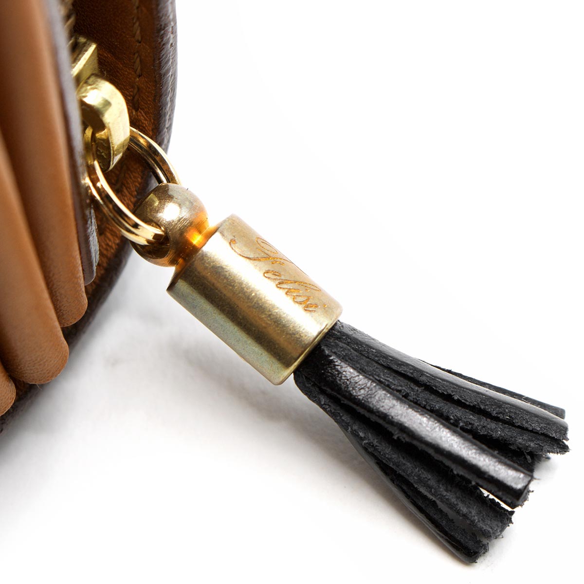 1973年、フェリージは、歴史と芸術の小都市、イタリアのフェラーラで創業しました。伝統工芸の馬具制作に魅了され、「独自の革製品を作る」という大きな情熱のもと、フェラーラ旧市街の歴史ある一画に、手作りの革工房をオープンし、そこで、趣味のように作っていた革製のアクセサリーが、友人や家族の間で評判を呼び、フェリージという名前を付けて売り出しました。フェリージの個性的な製品は、質の高さやデザインのオリジナリティによって、多くのファンを集めます。ブランドのロゴは、フェラーラ地方の地主であったフェリージ家の紋章であり、このしるしは兜と楯、林檎の木がモチーフで多くの鞄製品に使われています。数ある商品の中でも有名なのは鞄であり、「No.8637」や、「No.9362」などが定番商品として知られています。