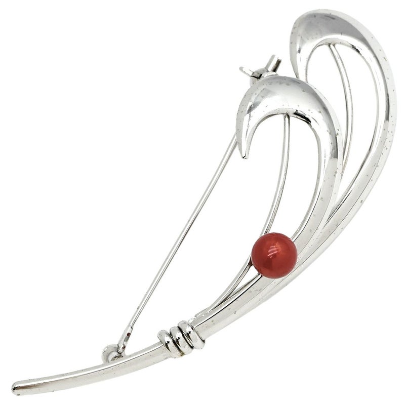 ブローチ 珊瑚 シルバー シルバー 赤 流線ブローチ 中古