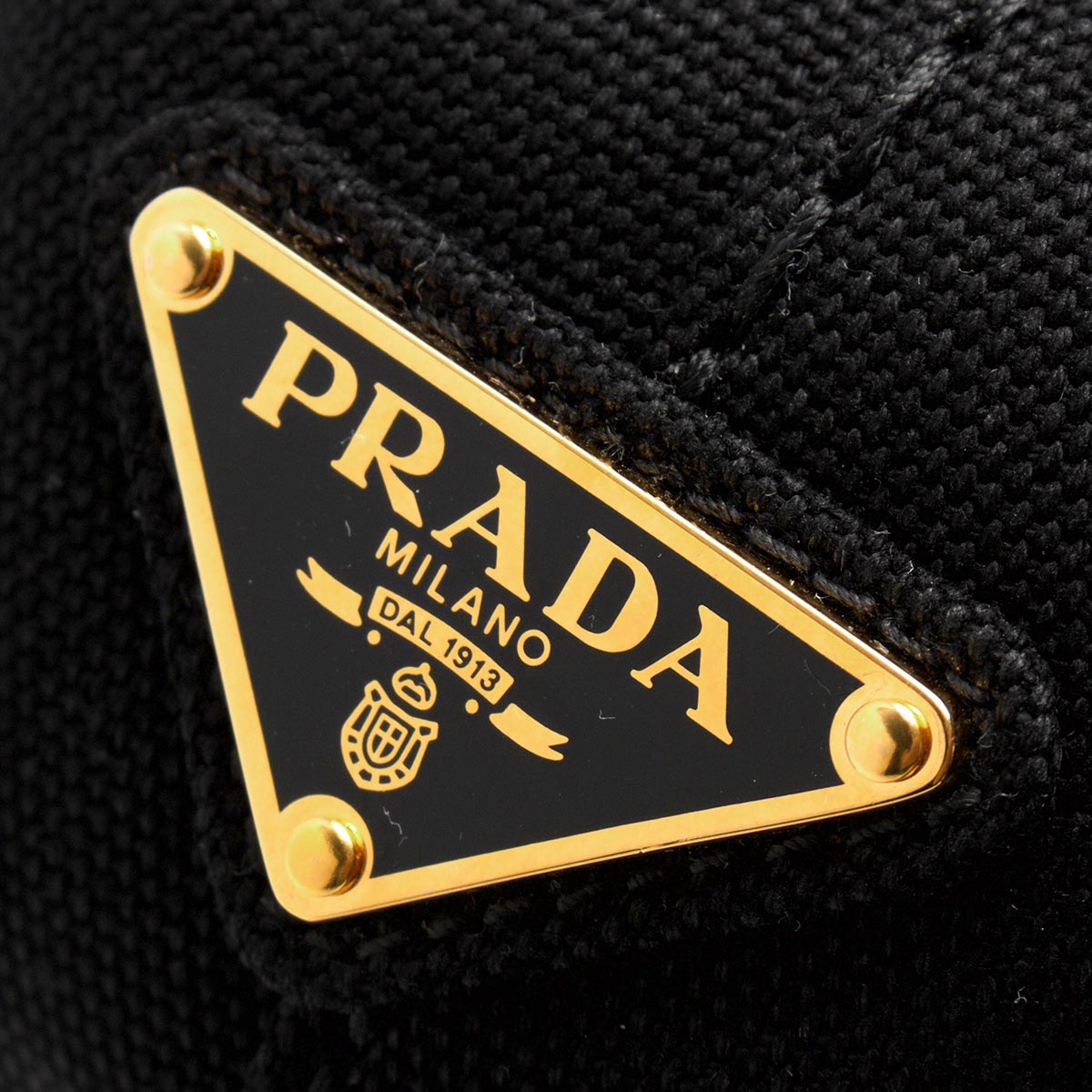 プラダの【カナパ CANAPA 三角ロゴプレート】トートバッグです。上品なブラック【NERO】キャンバスボディのセンターに、『PRADA MILANO』のロゴがプリントされた定番のデザイン。大きすぎないカタチはちょっとしたお出かけなどに大変おすすめ!また、ニューデザインのストライプ柄のショルダーストラップがアクセントになって魅力的。自分へのご褒美、大切な方へのプレゼント・ギフトなど、この機会にいかがでしょうか。