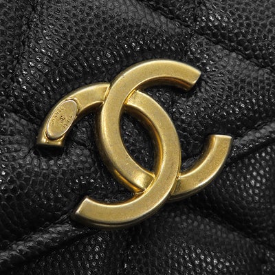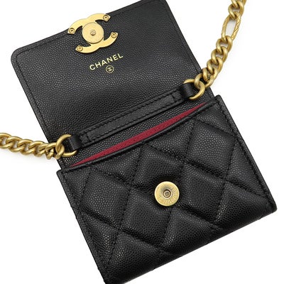 シャネル CHANEL チェーンウォレット マトラッセ ミニ チェーンクラッチ レザー キャビアスキン ブラック ゴールド金具 チェーンショルダー 黒 31****** 【箱】 【中古】