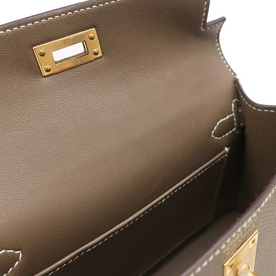 エルメス HERMES 2WAYバッグ ミニケリードゥ 外縫い ヴォーエプソン エトゥープ ゴールド金具 ショルダー 2023年製 B 【箱】 【中古】