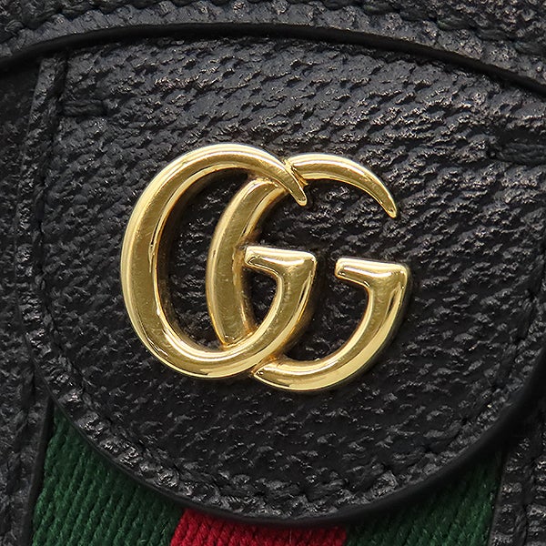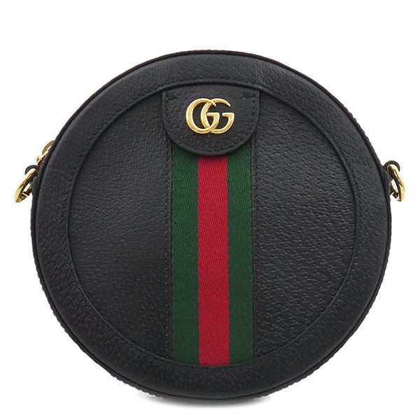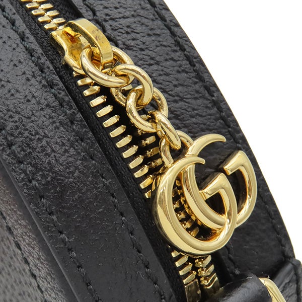 グッチ GUCCI ショルダーバッグ オフィディア GG ミニ ラウンド ショルダー レザー ブラック ゴールド金具 黒 緑 赤 チェーンショルダー 550618 【中古】