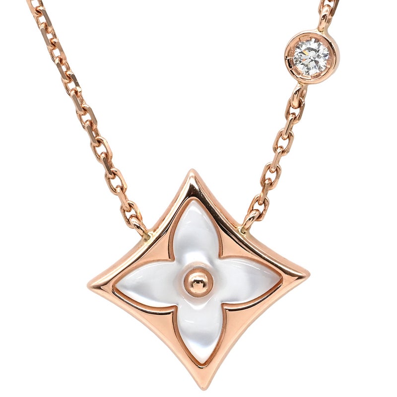 ルイヴィトン LOUIS VUITTON ネックレス パンダンティフ スター ブロッサム BB ピンクゴールド ペンダント K18 シェル ホワイト ダイヤ 1粒 1P 【箱】 【中古】
