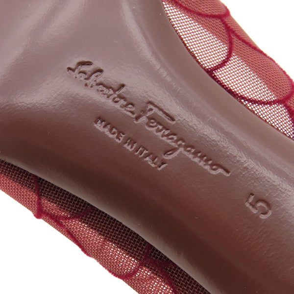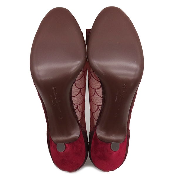 サルヴァトーレ・フェラガモ Salvatore Ferragamo パンプス ヴァラ リボン ファブリック バーガンディー #5 ボルドー 赤 チュール 732853 【箱】 【中古】
