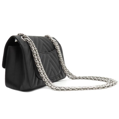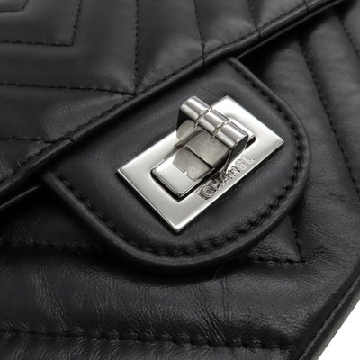 シャネル CHANEL ショルダーバッグ シェブロン 2.55 20 レザー ブラック シルバー金具 黒 Wチェーン Vステッチ ランダムシリアル 【箱】 【中古】