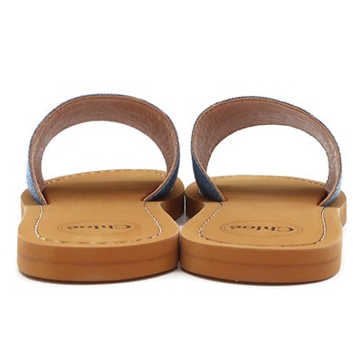 クロエ Chloe サンダル ウッディ ラバー テキスタイル エチレンビニルアセテート デニムブルー #35 ロゴ フラットサンダル C20185Z10 【箱】 【中古】