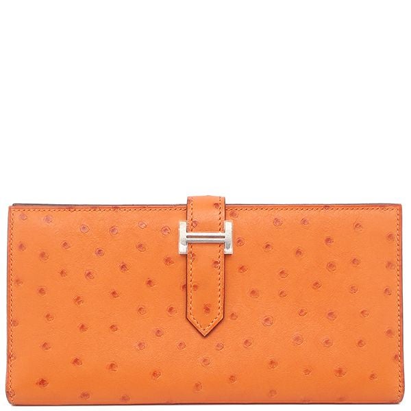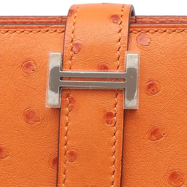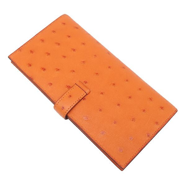 エルメス HERMES 長財布 ベアンスフレ オーストリッチ オレンジ シルバー金具 二つ折り財布 ソルド品 D刻印 【箱】 【中古】