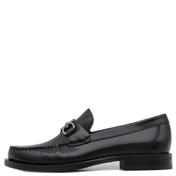 フェラガモ FERRAGAMO ローファー FORT ガンチーニ レザー NERO 7 シルバー金具 黒 靴 762695 【箱】 【中古】