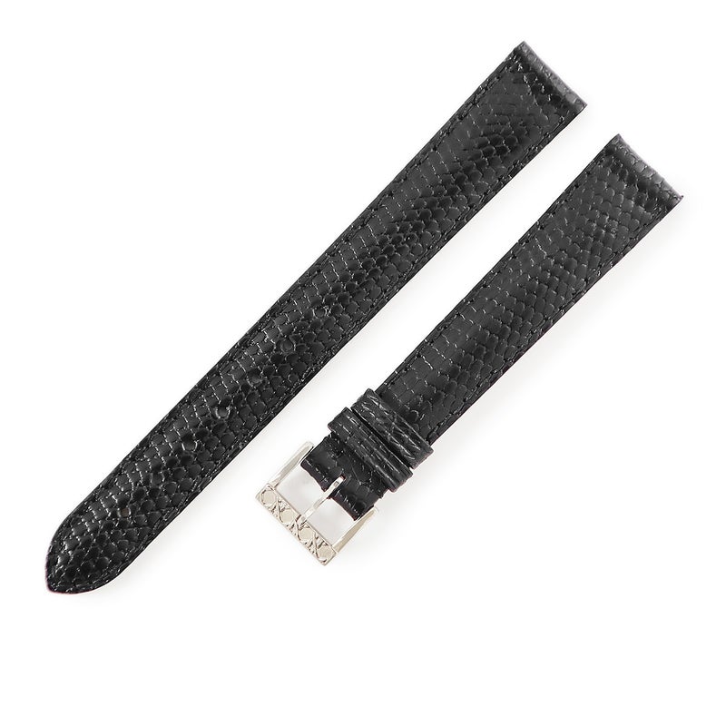 クリスチャン・ディオール Christian Dior 腕時計パーツ 純正 リザード ステンレススチール ブラック 未使用 替え リザードバンド ベルト 14mm ブラック 黒 バネ棒 尾錠付き 【中古】