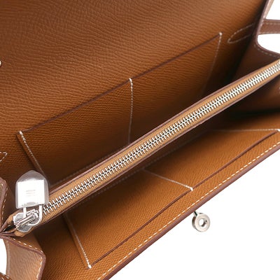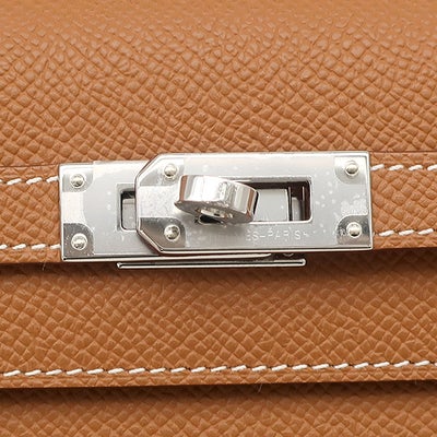 エルメス HERMES 長財布 ケリーウォレット ロング トゥーゴー ヴォーエプソン ゴールド シルバー金具 茶 ショルダー K刻印(2025年製) 【箱】 【中古】