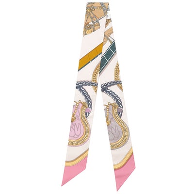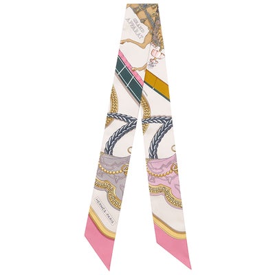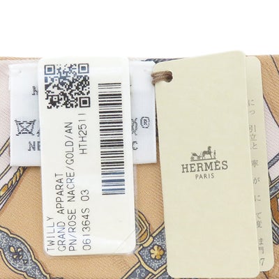 エルメス HERMES スカーフ ツイリー シルク ローズ ナークル×ゴールド×アントラシト 新品 未使用 【GRAND APPARAT/盛装の馬】 【箱】 【中古】