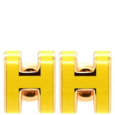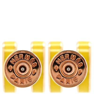 エルメス HERMES ピアス ポップアッシュ Hピアス ミニ GP エナメル イエローXローズゴールド ピンクゴールド金具 黄 Hモチーフ 【箱】 【中古】