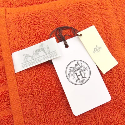 エルメス HERMES タオル ラビリンス タオルハンカチ コットン オレンジ 新品 未使用 Hロゴ ハンドタオル 綿100% 【箱】 【中古】