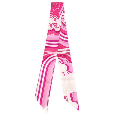 エルメス HERMES スカーフ ツイリー シルク ローズ×ホワイト×フューシャ 【BRIDES DE GALA SHADOW/ブリッドドゥガラ シャドー】 【箱】 【中古】