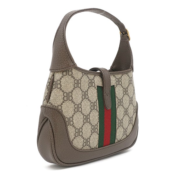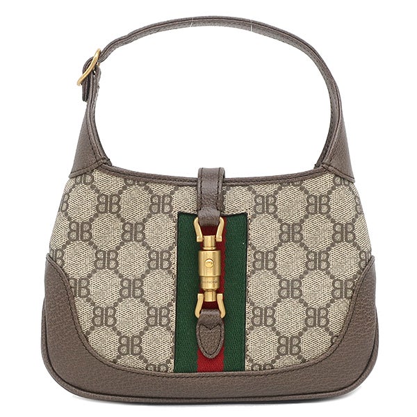 バレンシアガ BALENCIAGA 2WAYバッグ ザ ハッカー プロジェクト ジャッキー 1961 キャンバス レザー ベージュ×エボニー ゴールド金具 茶 GUCCI グッチ コラボ 680132 【箱】 【中古】