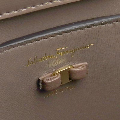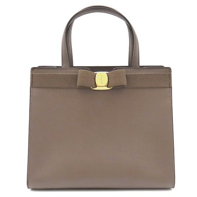 フェラガモ FERRAGAMO 2WAYバッグ ヴァラ リボン トップハンドル カーフ スプリットカーフ ファブリック キャラウェイシード ゴールド金具 茶 ハンドバッグ ショルダーバッグ 21I290 【保存袋】 【中古】