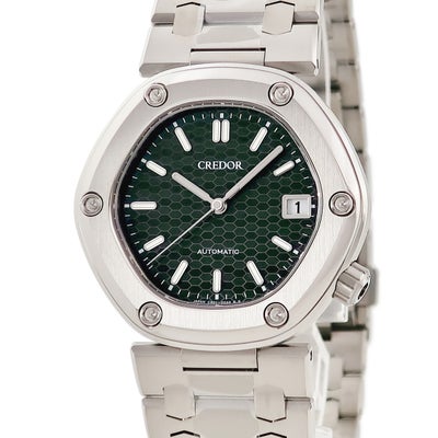 クレドール Credor ロコモティブ GCCR997 CR01-00B0 未使用 グリーン バー デイト 六角形 ブライトチタン メンズ 腕時計自動巻き グリーン 【中古】