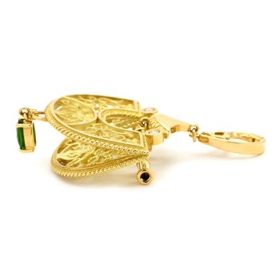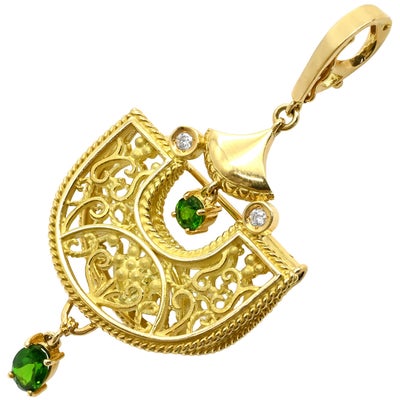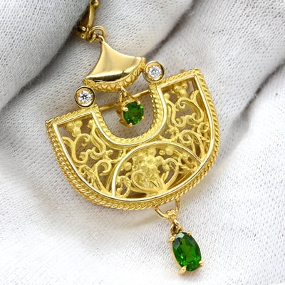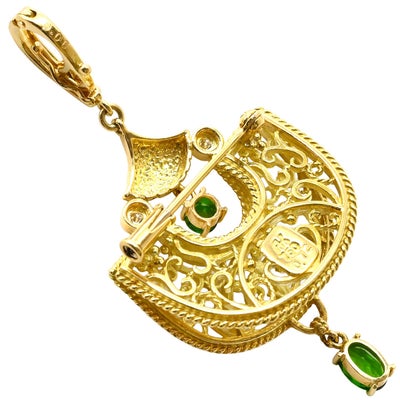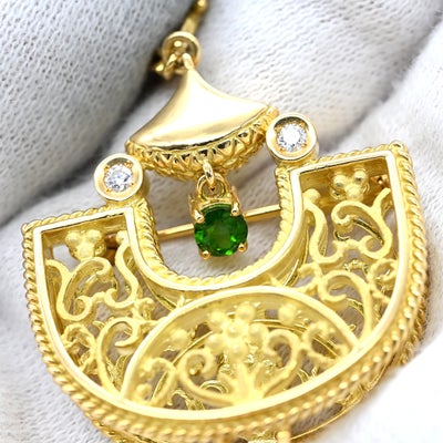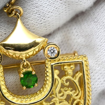 池田啓子 KEIKO IKEDA ブローチ 透かし細工 2WAYブローチ イエローゴールド AK 18K 750 YG ダイヤ 色石 扇型 モチーフ ペンダントトップ 【中古】