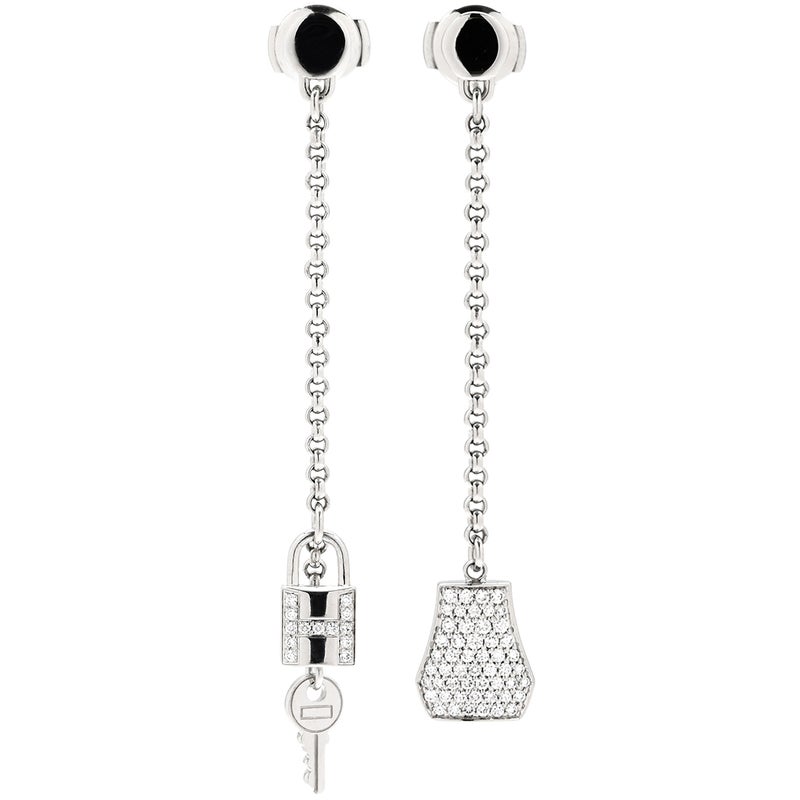 エルメス HERMES ピアス ケリー クロシェット ホワイトゴールド ダイヤ パヴェ Au750 18K 18金 ドロップ スイング アシンメトリー H221513B 00 【中古】