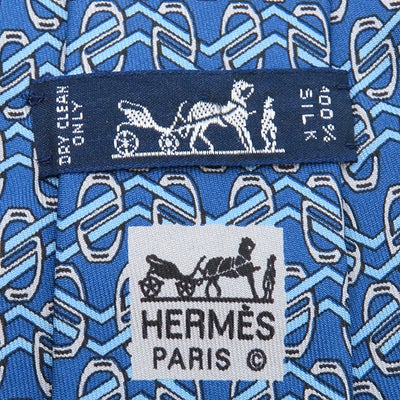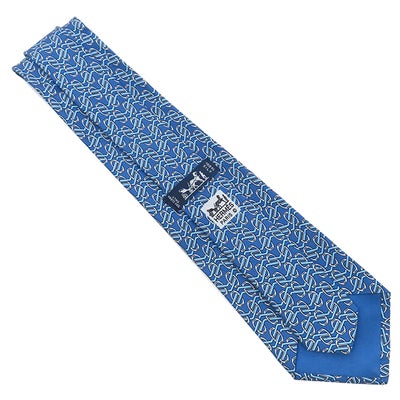 エルメス HERMES ネクタイ クラバット 9cm シルク ブルー×グレー 青 総柄 【中古】