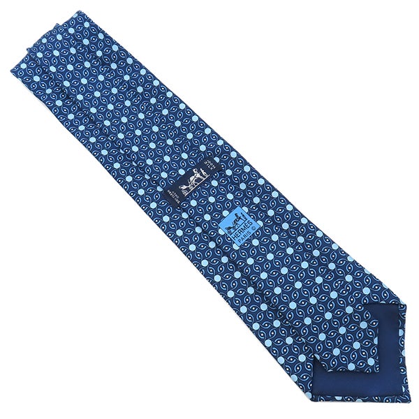 エルメス HERMES ネクタイ クラバット 9cm シルク ネイビー×ブルー 紺 青 総柄 幾何学柄 【中古】