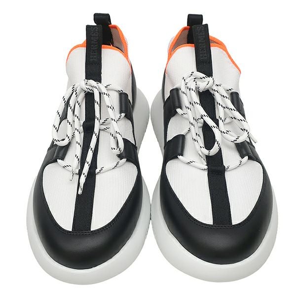 エルメス HERMES スニーカー デュエル DUEL ファブリック レザー ホワイトXブラック #41 白 黒 スリッポン 新品 未使用 H212911Z 【保存袋】 【中古】