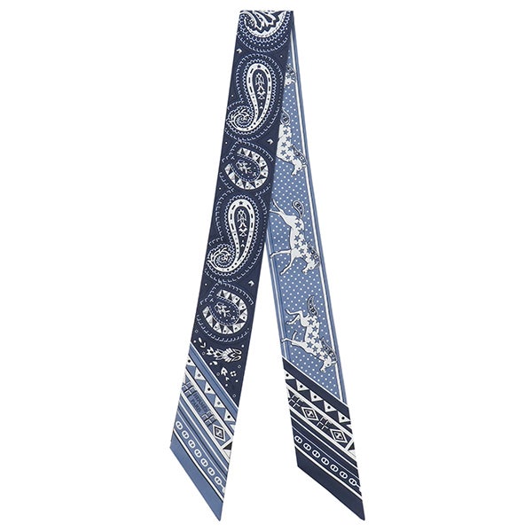 エルメス HERMES スカーフ ツイリー シルク ブルージーン×マリン×ホワイト 新品 未使用 【CHEVAL DE COEUR BANDANA/シュヴァル ドゥ クール バンダナ】 【箱】 【中古】