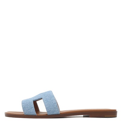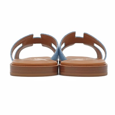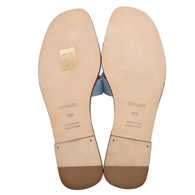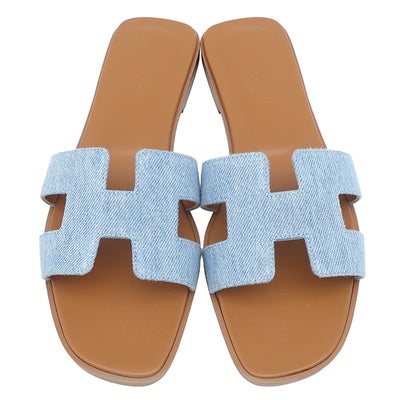 エルメス HERMES サンダル オラン デニム レザー ブルークレール #38 1/2 新品未使用 H型 ローヒール デニム H211242Z 【中古】