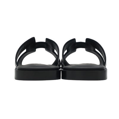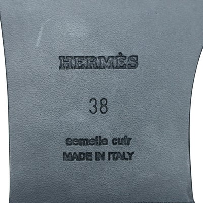 エルメス HERMES サンダル オラン ボックスカーフ レザー ブラック #38 新品 未使用 H型 黒 白ステッチ フラットサンダル H021056Z 【箱】 【中古】