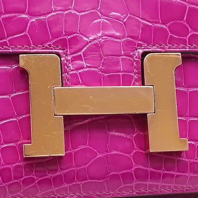 エルメス HERMES ショルダーバッグ コンスタンス ミニ 3 アリゲーター ローズシェヘラザード ゴールド金具 A刻印 【保存袋】 【中古】