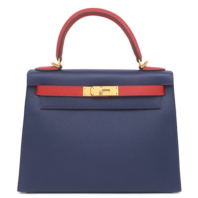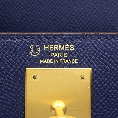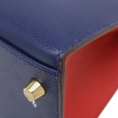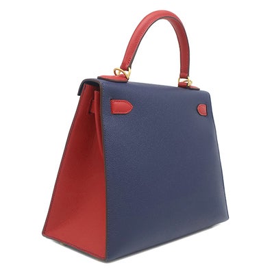 エルメス HERMES 2WAYバッグ ケリー28 外縫い ヴォーエプソン ブルーサフィール×ルージュカザック ゴールド金具 【PO品】 ハンドバッグ ショルダー D 【中古】