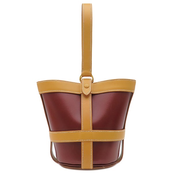 エルメス HERMES ハンドバッグ ミュズリエール2 ボックスカーフ ルージュヴィフ×ナチュラル×ハバナ ゴールド金具 赤 ベージュ 茶 バケツバッグ □D刻印 【保存袋】 【中古】
