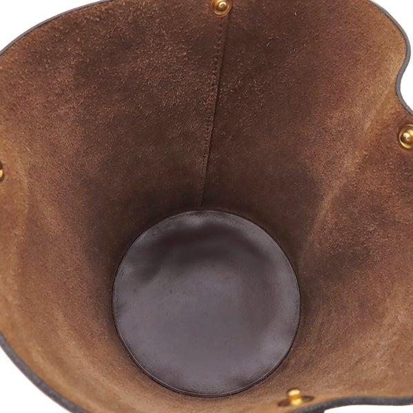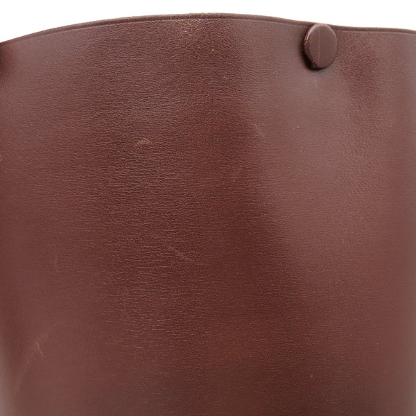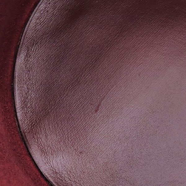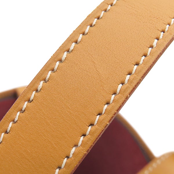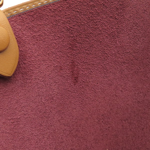【外側】表面や底面に擦れや薄汚れ、押し跡、角周りやコバに擦れや剥げ、赤レザーや茶レザーに擦れ傷や薄汚れ、クセ、ハンドルにシワやクセ、ベルトにボンド汚れ、金具に擦れ【内側】擦れや僅かな毛羽立ち、薄汚れ【におい】僅かな保管臭【刻印の場所】内側底面
