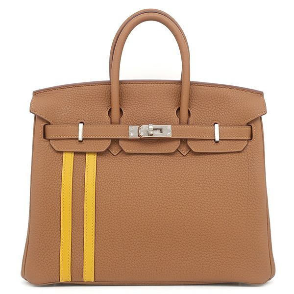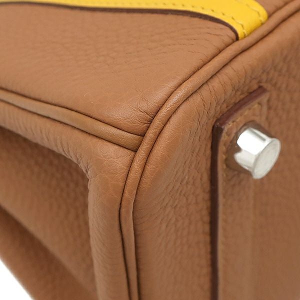 エルメス HERMES ハンドバッグ バーキン25 オフィサー トゴ ヴォースイフト ゴールド×ジョーヌアンブレ シルバー金具 C刻印 【箱】 【中古】