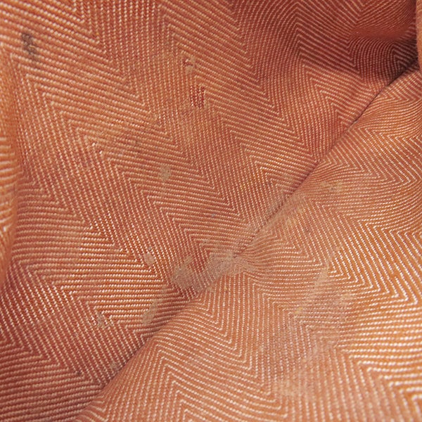 【外側】表面に擦れ、レザーに擦れや擦れ傷、薄汚れや押し跡、シワ、四つ角に擦れや剥げ、コバにヒビ、ハンドルに黒ずみ、ポーチにシミ、金具に擦れや小傷、錆【内側】擦れや毛羽立ち、薄汚れ【におい】保管臭