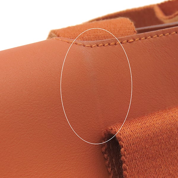 【外側】表面や付属品に擦れや毛羽立ち、僅かな薄汚れ、レザーに擦れや擦れ傷、薄汚れやシワ、四つ角やフチに僅かな擦れ、ハンドルに毛羽立ちや黒ずみ、金具に擦れやくすみ【内側】擦れや毛羽立ち、僅かな薄汚れ、フラップ裏に薄汚れや押し跡【におい】僅かな保管臭 ※保存袋に画像のような薄汚れがございます。