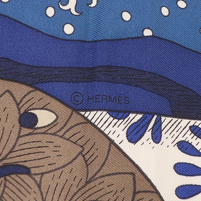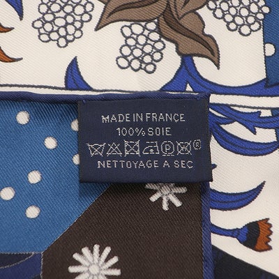 エルメス HERMES スカーフ カレ90 CARRE シルク ブルーニュイ×ホワイト×エベンヌ 【 LE PREMIER CHANT /始まりの歌 】 【中古】