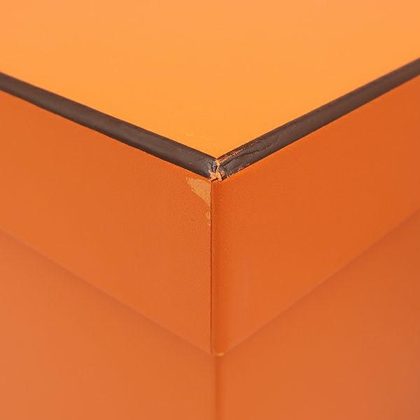 【外側】若干の型崩れやシワ、表面に僅かな擦れや小傷、点汚れ、四つ角やフチ、コバに僅かな擦れや剥げ、薄汚れ、ハンドルに僅かな擦れや小傷、コバに剥げ、ベルトにクセや穴の広がり、金具に擦れや小傷、クロシェットに小傷【内側】若干の色褪せ、僅かな擦れや押し跡、コバにヒビ、ポケットに汚れ、ステッチに毛羽立ち【におい】僅かな化粧品のにおい移り【刻印箇所】内側左側面 ※箱に押し跡や僅かな破れ、留め具が若干固くなっています。