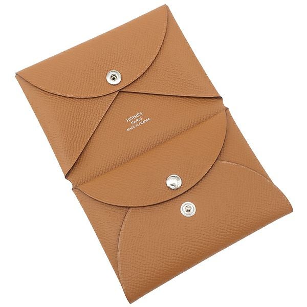 エルメス HERMES カードケース カルヴィ デュオ ヴォーエプソン ゴールド シルバー金具 新品 未使用 茶 フラグメントケース K刻印(2025年購入) 【箱】 【中古】