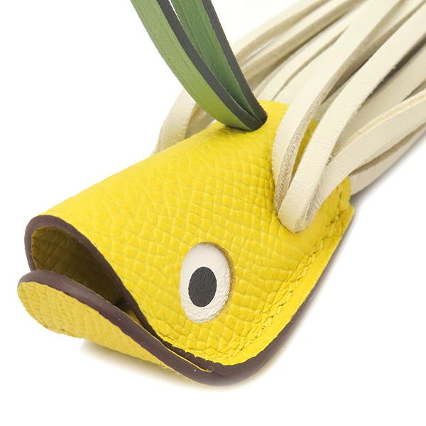 エルメス HERMES バッグチャーム ポワソン ヴォーエプソン アニョーミロ ジョーヌナプル×クレ×ヴェールクリケット 新品 未使用 黄色 オフホワイト 薄緑 魚 Poisson K刻印(2025年製) 【箱】 【中古】