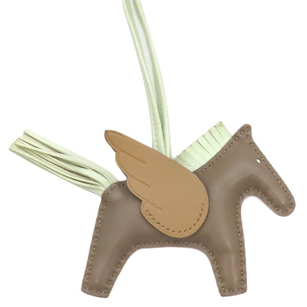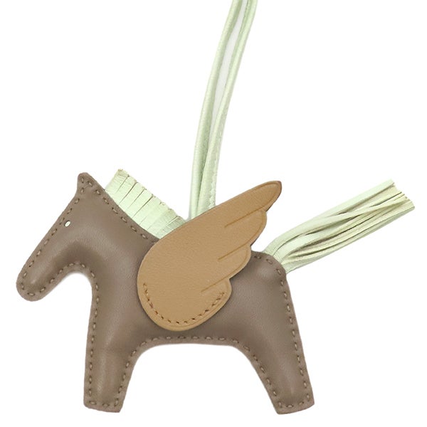 エルメス HERMES バッグチャーム ロデオPM ペガサス アニョーミロ エトゥープ×ヴェールフィズ×ビスキュイ グレージュ 薄緑 茶 U刻印 【中古】