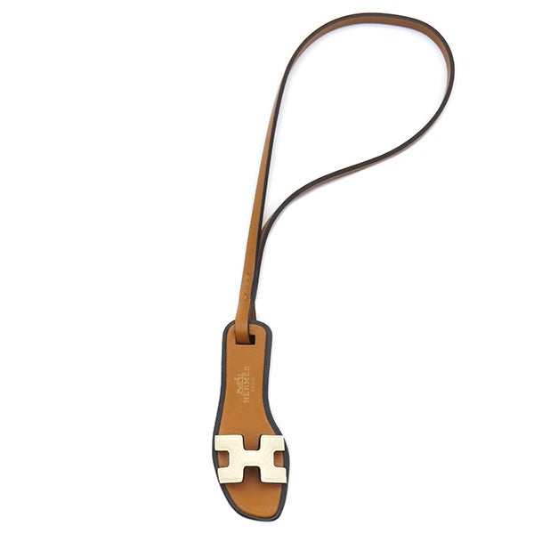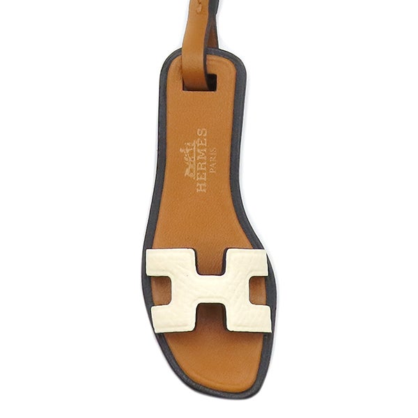 エルメス HERMES バッグチャーム オランナノ ヴォーエプソン ヴォーバトラー ヴァッシュハンター ナタ×ナチュラルサブレ 新品 未使用 アイボリー 茶 サンダル型 【箱】 【中古】