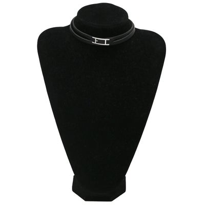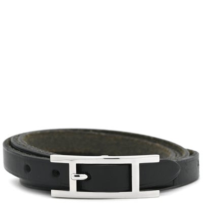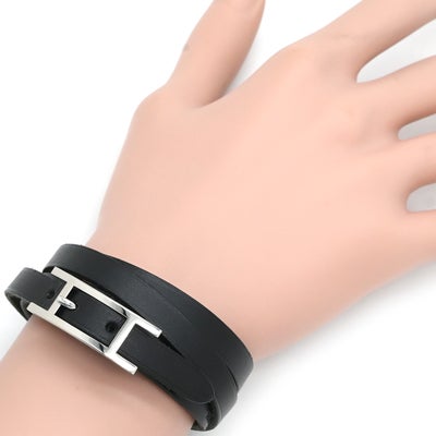 エルメス HERMES ブレスレット アピ3 レザー ロングブレスレット レザー メタル ブラック シルバー金具 黒 □R 【中古】