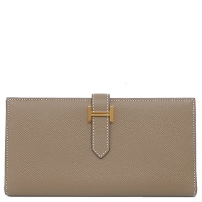 エルメス HERMES 長財布 ベアンスフレ ヴォーエプソン エトゥープ ゴールド金具 グレージュ Z 【箱】 【中古】