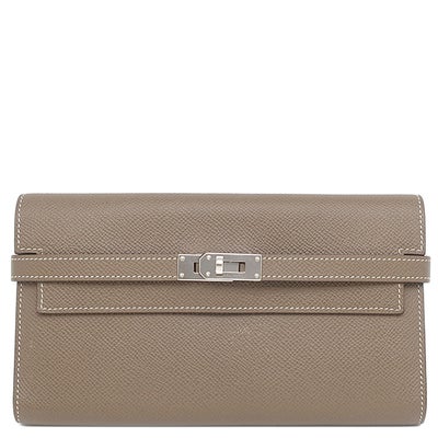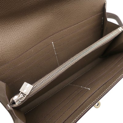 エルメス HERMES 長財布 ケリーウォレット ロング ヴォーエプソン エトゥープ シルバー金具 グレージュ C 【箱】 【中古】