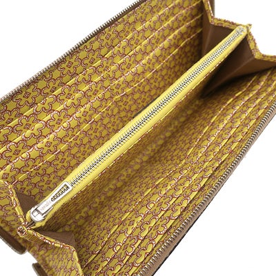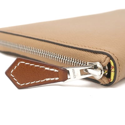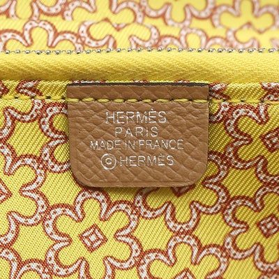 エルメス HERMES 長財布 アザップロング シルクイン ヴォーエプソン チャイ シルバー金具 薄茶 黄色 馬蹄モチーフ 花柄 U 【箱】 【中古】