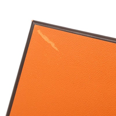 【外側】特になし【内側】特になし【におい】僅かな素材特有のにおい【刻印場所】内側オープンポケット内【保護シール箇所】H金具 ※箱に擦れや破れ、黒い汚れがございます。