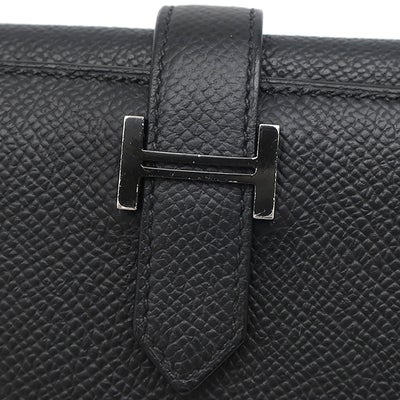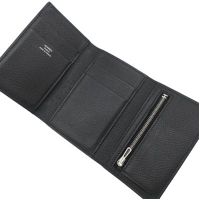 エルメス HERMES 三つ折り財布 ベアン コンビネ ヴォーエプソン ブラック ブラック金具 ソーブラック モノクローム U 【中古】