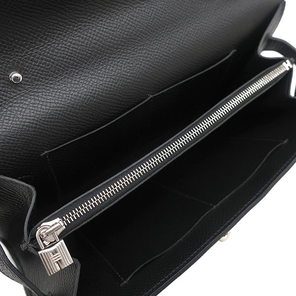 エルメス HERMES 長財布 ケリーウォレット ロング トゥーゴー ヴォーエプソン ブラック シルバー金具 黒 Z 【中古】